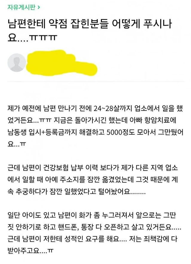 과거 업소에서 일했던걸 들킨 아내의 고민